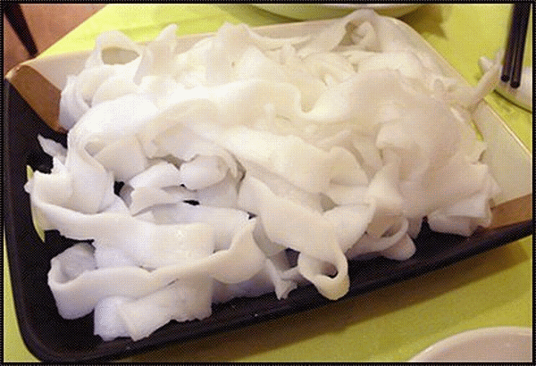 Tripe cut into 2-inch squares.